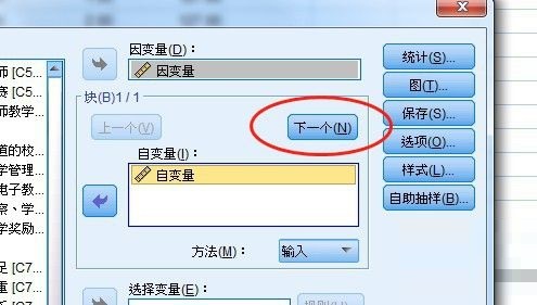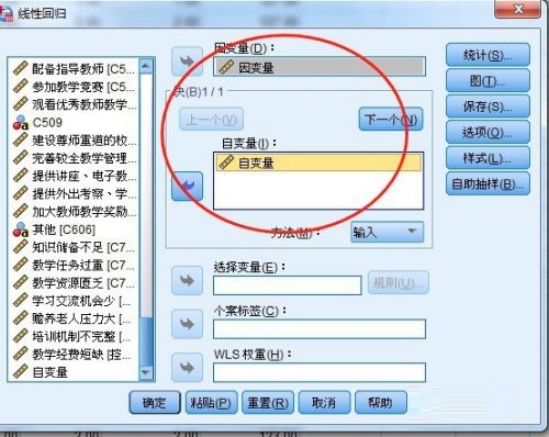 第三步:选择自变量和因变量到对应的框(如图所示)。