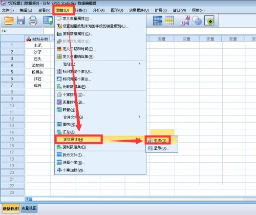 第三步:点击数据菜单,选择正交设计,然后选择生成(如图所示)。