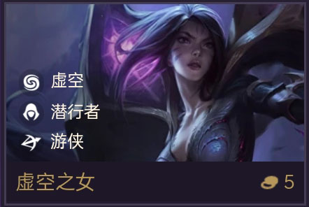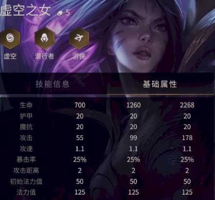 远程输出炮台。技能群体眩晕,技能增加自身高额护盾,与增加高百分比攻速,2星增加75%攻速,也就是说虚空之女2星裸装释放技能攻速将近1秒两刀,这让其输出能力大增特别是搭配能触发攻击特效的装备,输出能力极强。