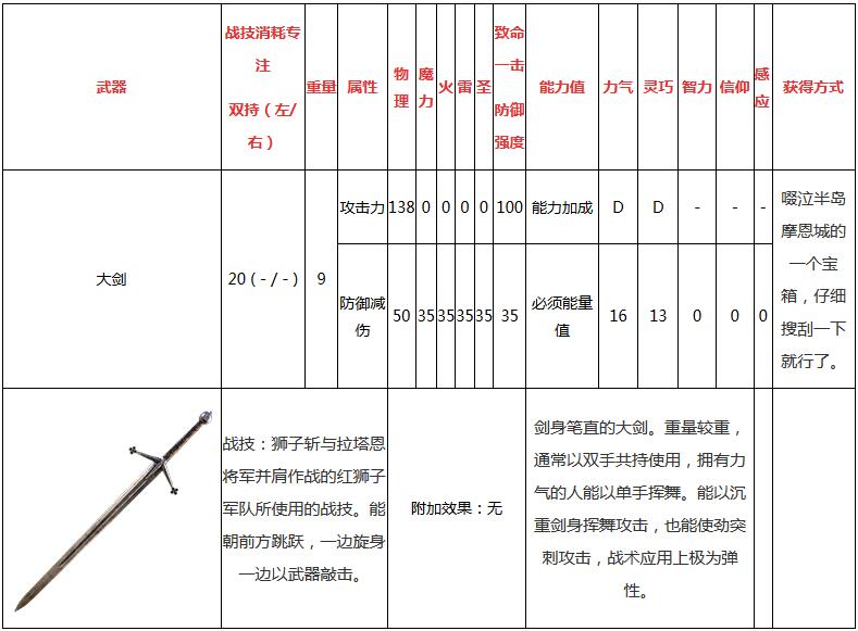 大剑属性介绍: