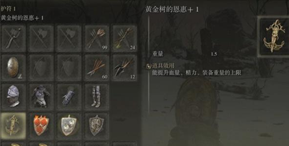 15、黄金树的恩惠+ 2:增加4%最大生命值,10%最大精力值,8%最大负重
