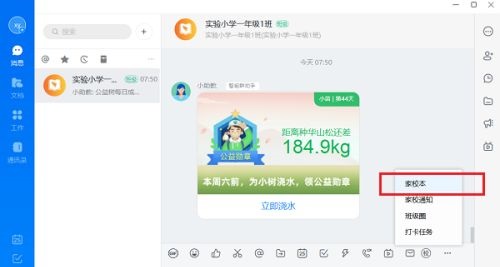 第二步:点击校的图标之后,选择家校本,如下图所示: