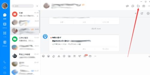 第一步:打开钉钉电脑版,进入目标群,点击右上角的“文件夹”图标(如图所示)。