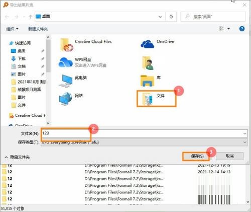 第三步:在导出结果列表对话框,选择【文件夹】,输入【文件名称】,点击【保存】即可(如图所示)。