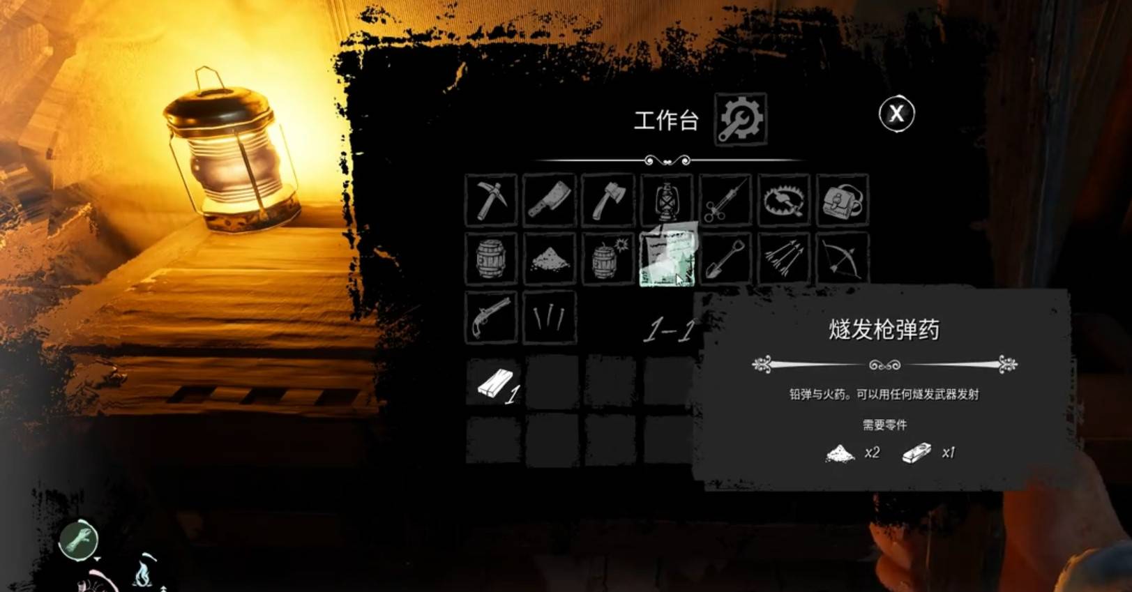 5.拿到火药后就去工作台那里,这里我们制作弹药,有了弹药后,我们的枪就起作用了,可以用来打狼了。