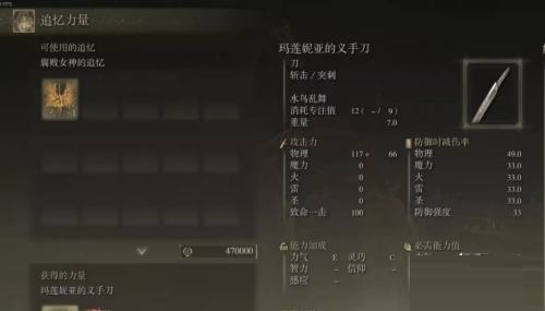2、玛莲妮亚的义手刀是《艾尔登法环》中一把非常特殊的武士刀,面板属性都很好。