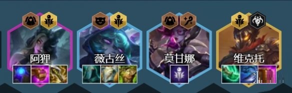 后期阵容:后期去找到2星阿狸和维克托补充伤害即可成型。如果没有维克托可以用斯维因来代替,阵容相对来说比较容易成型。而且强度在4-7以后来说还是不错的,但是大后期的强度则整体偏弱,因此后期还是主要以2星维克托为主,当然追出3星阿狸的话,阵容伤害完全弥补。