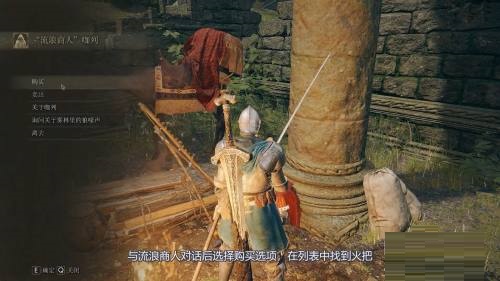 2、与流浪商人对话后选择购买选项,在列表中找到火把。