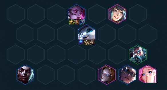 顺利的话5-5左右拉八,看局势搜阵容整体的二星,血量不健康就先大搜找出二星刀妹稳住血量。后期决赛圈则找机会上九,单挂二星五费质量卡,杰斯、塔姆和金克丝都可以。有强袭转职可以开4强袭给纳尔加成,有名流转直接开5名流,站位纳尔吃名流位,发条加盾,名流格如果在最后一排则直接转名流赛娜即可。