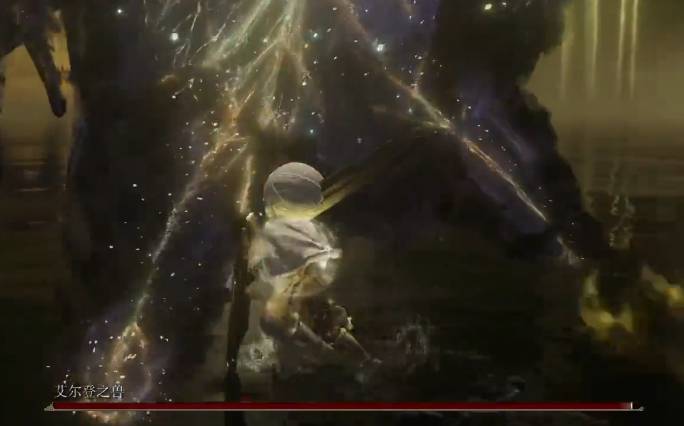 3、艾尔登之兽进入第二阶段会举起光剑打出一个范围输出,我们要看准时机,它的光剑落下后就闪避。