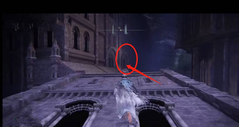 8.直走会看到拱门,穿过拱门,在缺口处左拐;