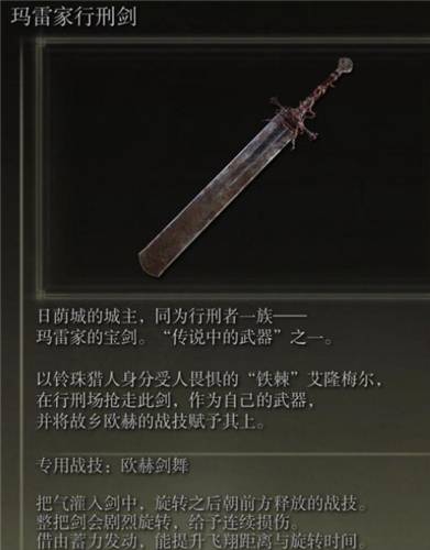 8、玛雷家行刑剑:击杀日荫城boss掉落。