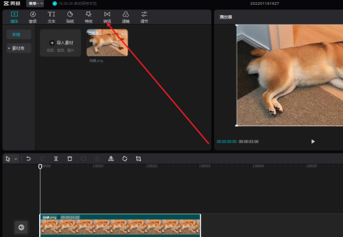 第一步:打开剪映电脑版,导入一张素材作为例子;