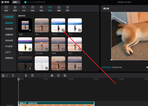 第三步:最后选择自己需要的转场效果,点击下载箭头即可插入。