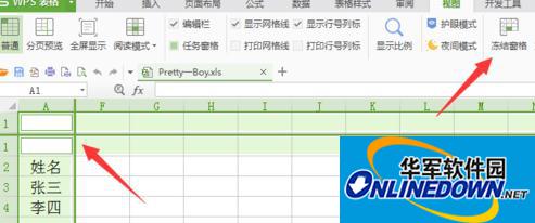 此时在wps中我们可以看到小编已经将第一行设置固定不动,下面的表格如何浏览都可以看到标题,很方便。
