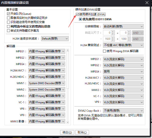 第四步:点击内置解码器设置选项(如图所示)。