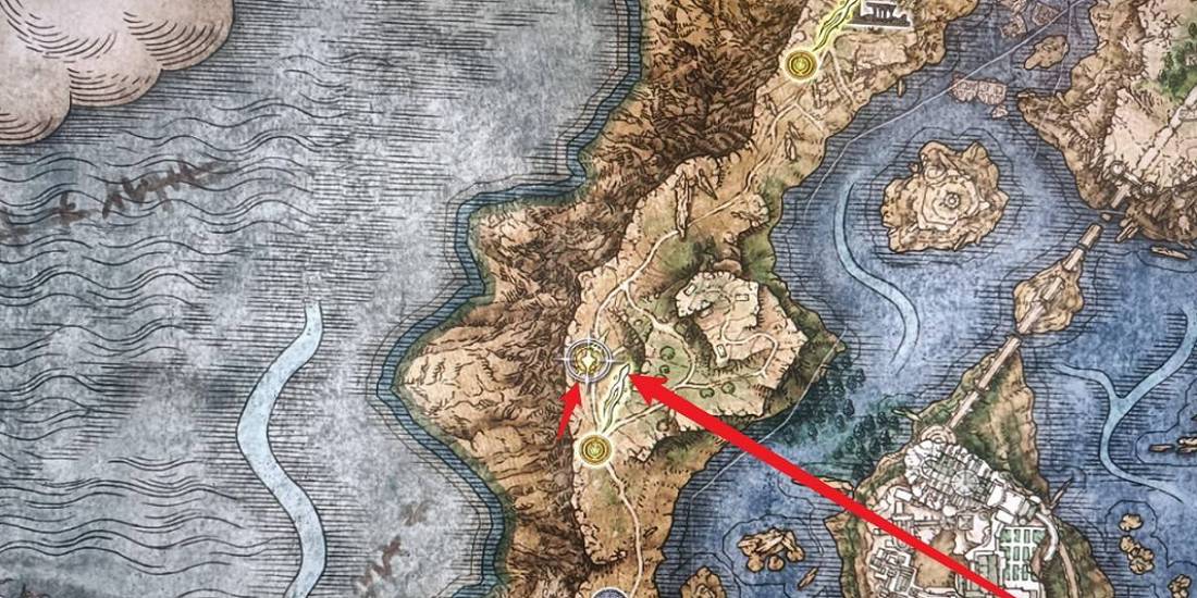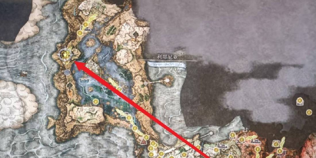 1.首先,进入艾尔登法环游戏,打开地图,前往这个位置。