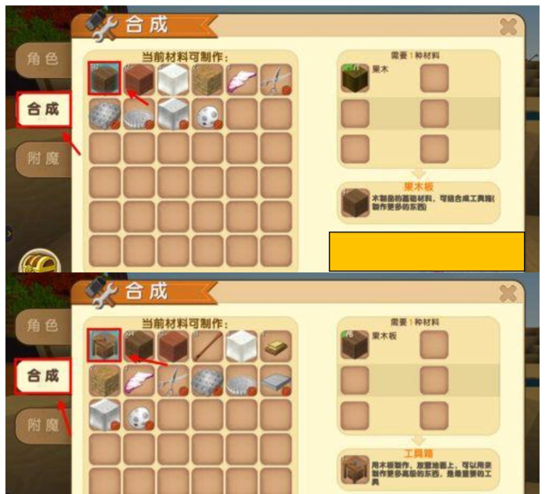 3、在背包中将收集到一定数量的木头分解成木板,将木板合成工具台。