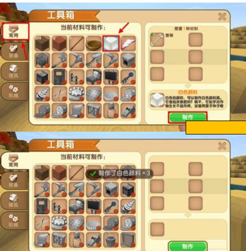 5、在常用选项中,将兽骨合成白色染料,1根兽骨可制作3个白色染料。