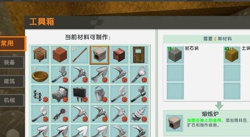 6、之后点击工具箱进入到【常用】页面,接着再选中熔炉,然后再点击页面右下角的【制作】功能,这样就获得熔炉了。