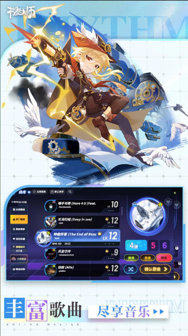 角色系统:游戏中有多个角色供玩家选择,每个角色都有独特的属性和加成,可以帮助玩家达到更高的“演奏”技巧水准。玩家可以通过购买或积分抽奖等方式获取角色。