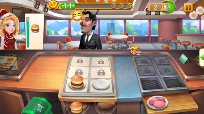 游戏采用关卡制,每个餐厅(如汉堡店、披萨店)设有独立关卡,难度逐步提升,考验时间管理与多任务处理能力。