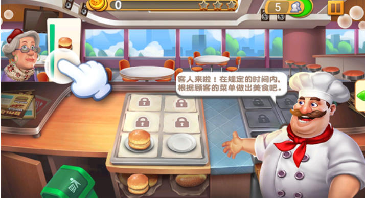 跟随剧情引导完成开业任务,逐步解锁新餐厅与关卡。