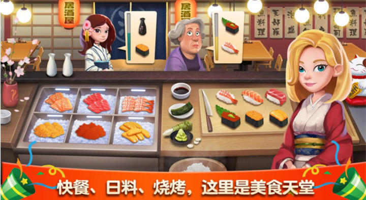 玩家需根据顾客需求快速制作各类美食,涵盖快餐、日料、烧烤、西餐、海鲜等全球风味,超过100种食材与菜谱可解锁。