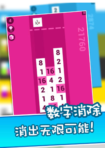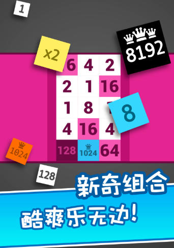 结合消消乐的消除快感与1248的数字策略,玩家需规划数字下落路径,避免屏幕被填满,同时追求高分合成。