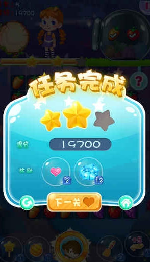 目标差异:有的关卡要求玩家在规定的步数内消除特定数量的某种水果;有的关卡则需要玩家收集指定数量的特殊道具,如星星、钥匙等;还有的关卡设置了时间限制,玩家需要在倒计时结束前完成消除任务。
