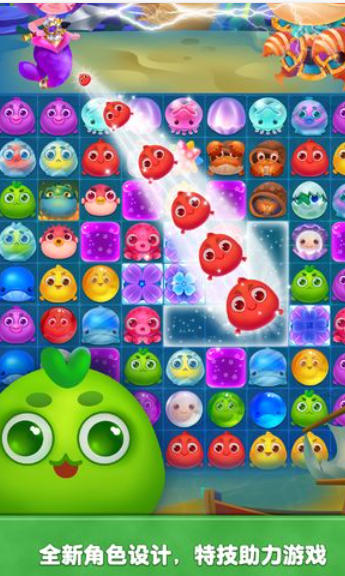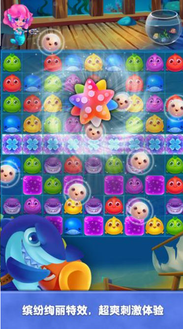 主题关卡:除了常规消除模式外,游戏还加入了多样化的主题关卡,如“解救被困小鱼”任务以及“礁石地形”挑战等。