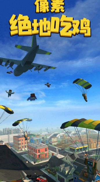 提供数百种像素风皮肤(如机械战甲、动物造型),支持角色、武器和降落伞的个性化装扮。