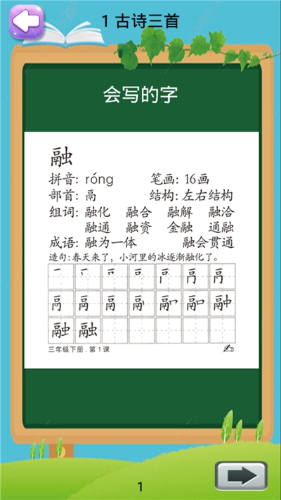 2、提供了每一课生字的拼音、朗读、组词、造句和解释,让学生不在面对枯燥的生字。