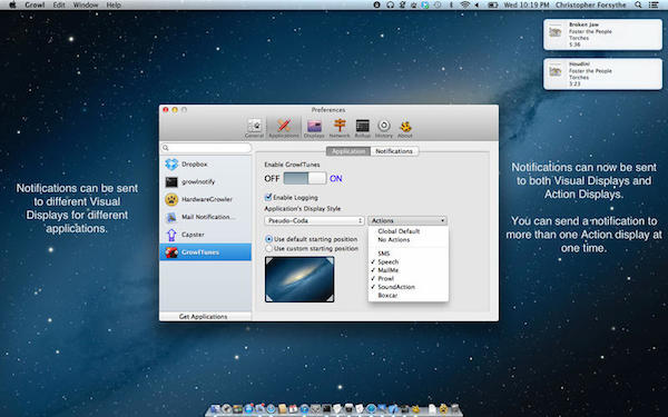 MAC官方版能够以多种方式接收通知,包括显示在屏幕上,通过电子邮件,甚至可以让mac读出来,Growl