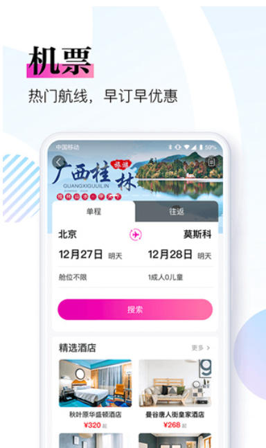 景点门票预订:全国景点优惠订,支持扫码入园,免排队。