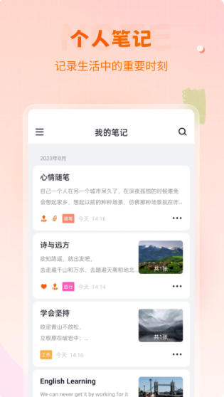形式丰富:支持文字、语音、图片、链接等多形式内容录入,满足不同场景需求。例如,会议中可用语音快速记录,旅行时可用图片搭配文字描述。