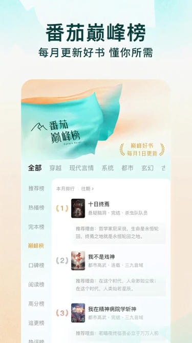 涵盖都市爽文、言情穿越、玄幻修仙、武侠世界等20+大类,超百万册图书实时更新,包括茅盾文学奖作品等经典出版物。