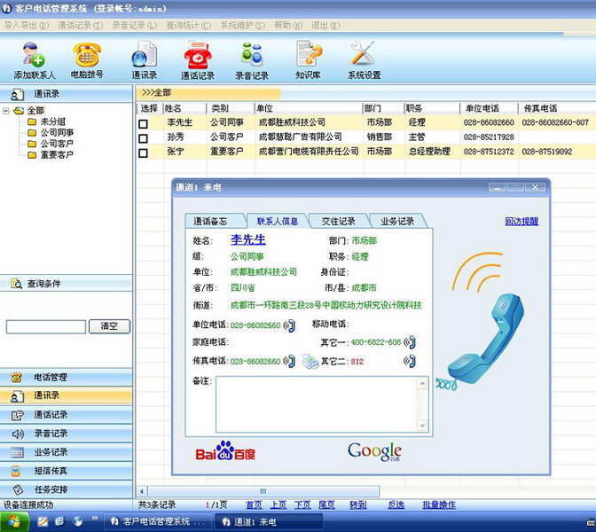 1楼 华军网友 2011-09-22 17:04:22胜威来电显示客户管理系统界面设计很容易上手,功能很丰富,本人极力推荐!