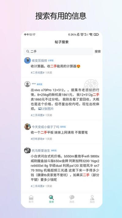 每个高校设立独立社区,信息地域精准,避免跨校干扰。用户可通过关键词搜索历史信息,提高信息获取效率。