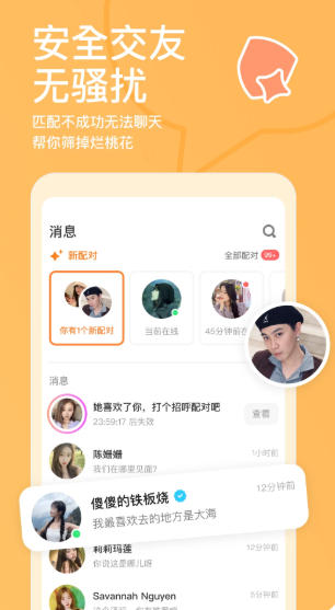 高效配对:配对成功后聊天回复率超高,避免无效骚扰,让用户专注于真正感兴趣的人。