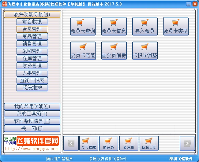 《飞蝶中小化妆品店(收银)管理软件》是一款专门针对中小化妆品店而开发的管理软件,软件整合了零售收银、批发销售、采购管理、仓库管理、财务管理、人事管理、商品管理、查询与报表、系统维护等功能,协助您轻松经营管理。