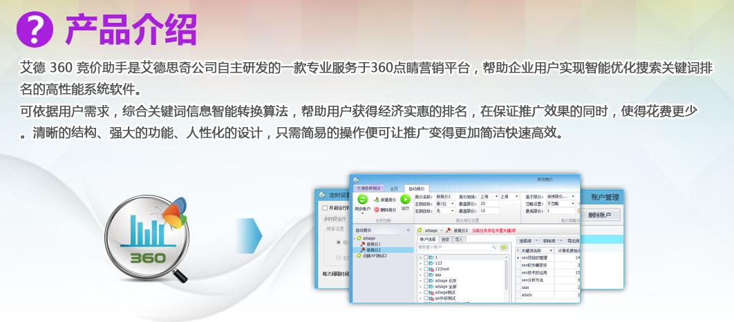 1楼 华军网友 2017-09-08 12:26:10艾德思奇360竞价软件很好用,谢谢啦!!