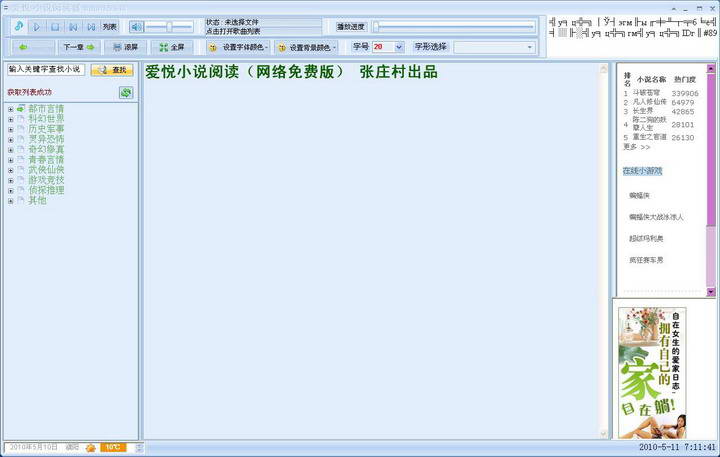 1楼 华军网友 2011-05-16 19:02:47爱悦小说阅读器(免费版)很好用,谢谢啦!!