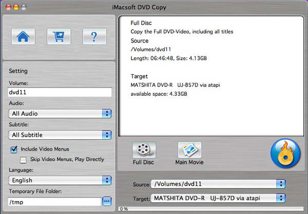 3楼 华军网友 2014-09-02 13:33:56iMacsoft DVD Copy For Mac功能已经挺全面了,是最新版的,免费下载,继续加油吧!