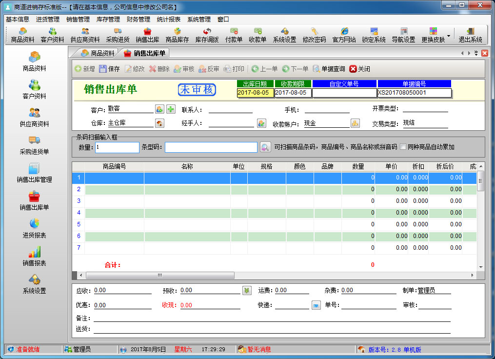 商道进销存标准版是一款专业的销售管理软件,其中包含商品销售管理系统 ,库存管理系统(仓库管理系统),财务和报表系统等子模块。软件界面设计简洁,美观,其人性化的软件流程,使普通用户不需培训也能很快掌握软件操作使用方法,上手极易。强大报表与集成查询功能是本软件的最大特色,所有功能在用户需要的使用地方自然体现,不用打开多个窗口重复查询。适用于商贸公司,个体门店等用于商业销售管理, 库存管理,财务管理等,客户管理,员工管理等场合,是您企业进行信息化管理的强大工具。