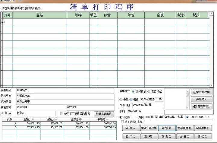 销售货物清单打印管理系统(免安装版)