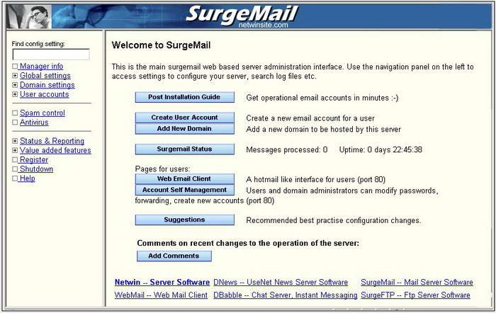 3楼 华军网友 2015-12-21 03:34:10SurgeMail Mail Server整体感觉不错,还是挺满意的,安装运行很流畅!按照安装步骤指导来非常顺利!