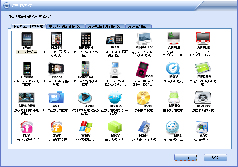 7.设有专门的分类功能:有标准iPad视频格式、高清晰iPad视频格式、优化iPad视频格式MPEG-4、iPad视频格式H.264编码、720P、1080P的HD高清iPad视频格式等。