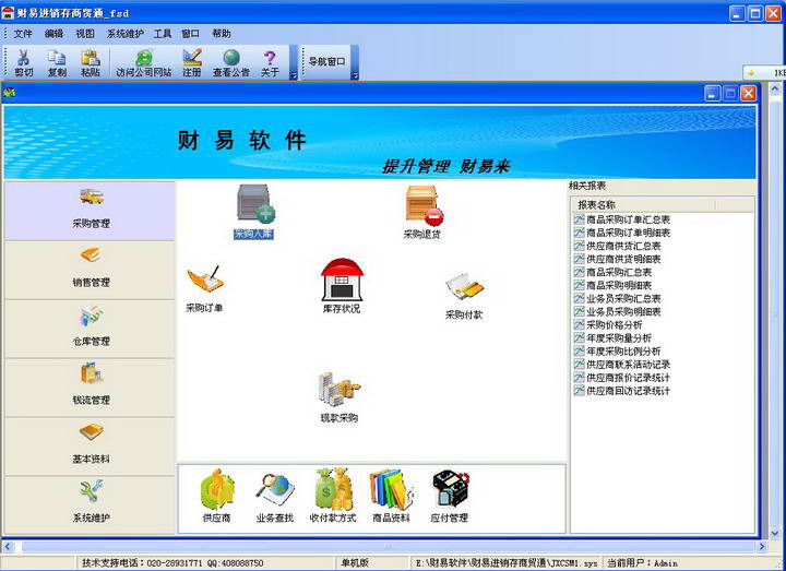 财易进销存软件普及版适合一个小店面,管理好自己的库存,做一些采购,销售,库存管理的工作。