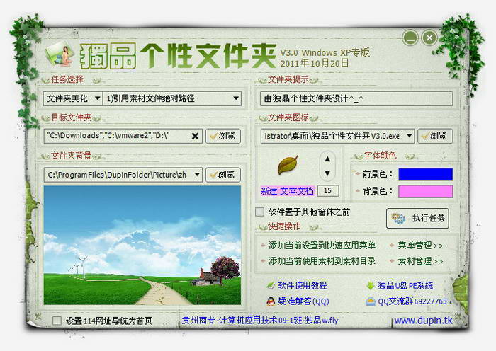 美化功能:文件夹背景,文件夹图标,文件夹提示信息,文件夹字体前景色背景色。